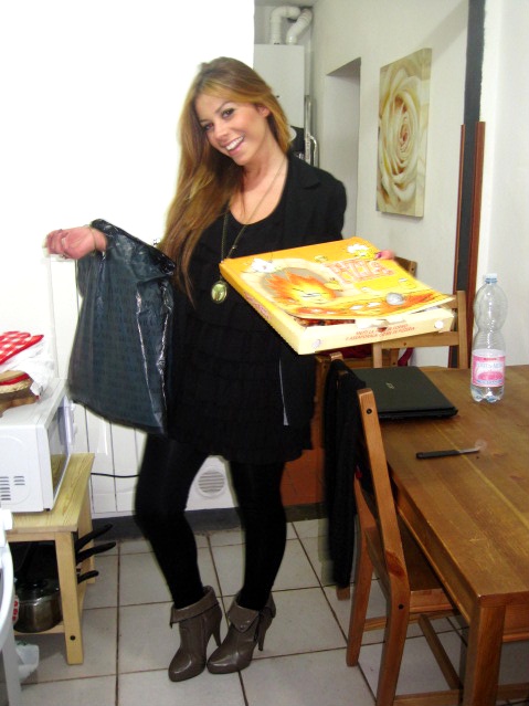 Italians known for their great taste in food, fashion, and wine have lived up to and certainly surpassed every expectation I had in all three categories. Starting with my first and only love fashion…what can I possibly say that has not been said already. Italy was at the forefront of fashion in the 18th century…three centuries later and it still continues to lead the fashion pack. With Milan Fashion Week just around the corner I thought I would spend a couple of days walking around taking in both the high fashion store fronts and the impeccably dressed Florentinians. These people literally live in a huge outdoor mall…there are clothing stores on every corner of every street…unlike LA where you would have to drive to Robertson to purchase your Chanel bag or be stuck in Downtown LA traffic to bargain with street vendors…Italy offers best of both worlds right at your finger tips.  Friday was the perfect day for some window shopping and of course retail therapy, so the new Jenna and I headed straight for Zara where we purchased the same cropped bunny shirt and I got a dress fit for my trip to Madrid next weekend. I stopped in at the corner pizzeria Leo Gustos for the most amazing pizza I have ever had in my entire life and took it home to have lunch with roomy Jenna. Italian Pizza and Italian clothes…what more could I want?
